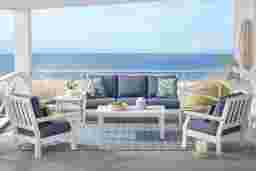 Eastlake White 4 Pc Outdoor Seating Set With Blueberry Cushions