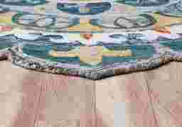 Discover the charm of our hand-tufted Igni Teal 4' Round Rug, made from 100% wool. This traditional-style rug features a beautiful medallion floral pattern in a vibrant mix of teal, blue, yellow, gray, and orange. Perfect for adding a touch of elegance and warmth to any space, its durable construction and stunning design ensure it will be a cherished addition to your home for years to come. Hand-Tufted with tight looped construction to minimize natural wool shedding & fraying. Reinforced with 100% cotton backing for durability and high-quality construction. Perfect shape and style for kitchen, dining room, bedroom, or living room. Soft 0.5 pile height for everyday comfort & heavy duty feel.
