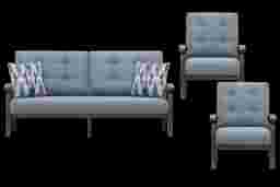Lake Breeze Aged Bronze 3 Pc Outdoor Seating Set With Blueberry Cushions