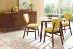 Melodina White 4 Pc Dining Room with Yellow Chairs