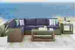 The Siesta Key sectional provides ample seating so the whole family can enjoy your beautiful patio space. Constructed from large weave all-weather woven wicker in a driftwood finish for a tropical feel steeped in casual comfort, a rust-resistant powder coated aluminum frame creates durability. Inky blue cushions are UV resistant and sturdy, providing a beautiful look. Four decorative toss pillows add the perfect accent. Select cushion colors also available in Sunbrella fabric.